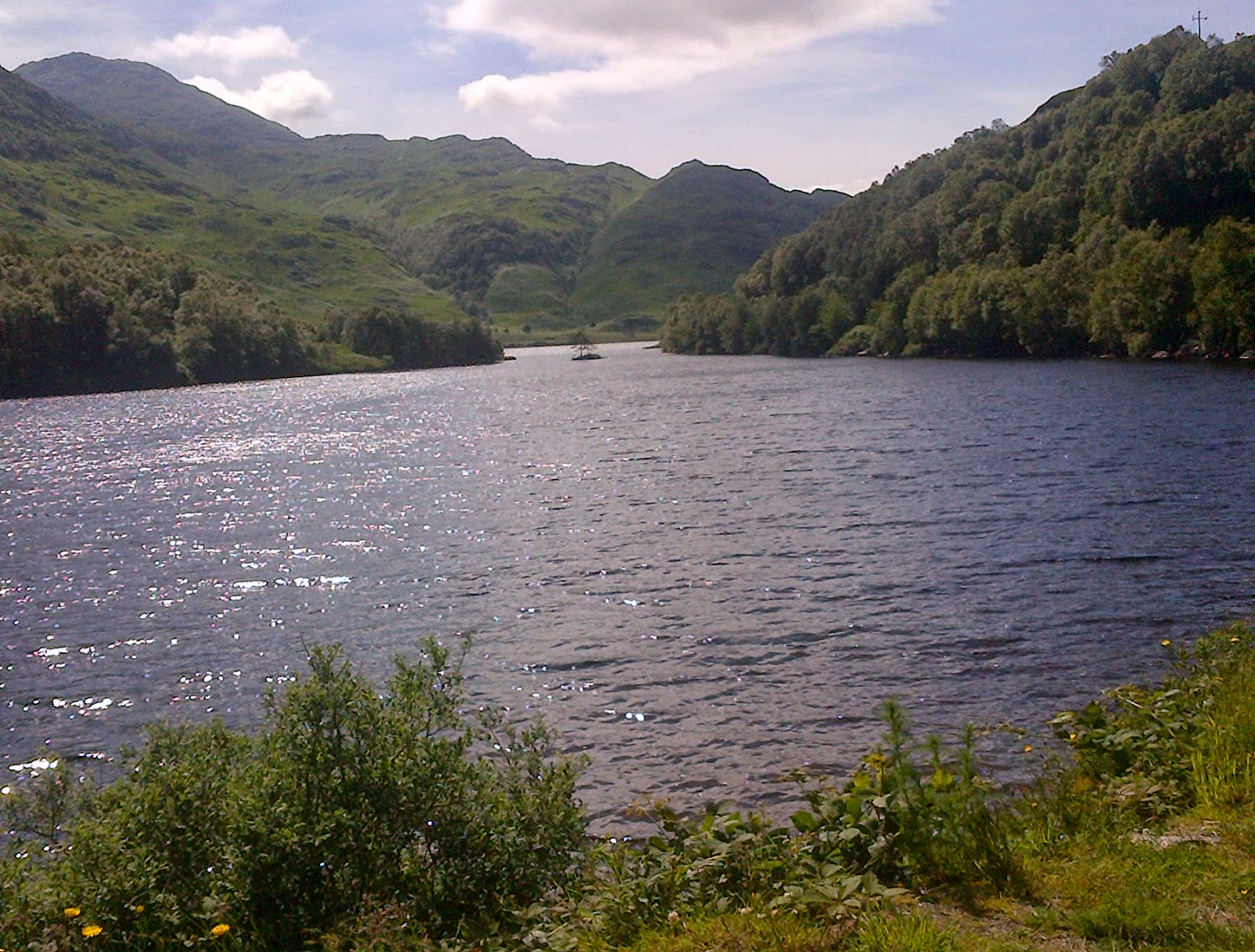 “Why don’t we go down here – we can get closer to the Loch,” says Geoffrey – so we follow him to the edge of the ridge. But my feet lose their nerve and refuse to go any further. Finding an ‘easier’ route, he plunges down through the bracken – and we follow him once more. This time my feet keep going, despite my flashes of deja vu; ill-considered excursions on mountainsides in Greece with Michael come to mind.