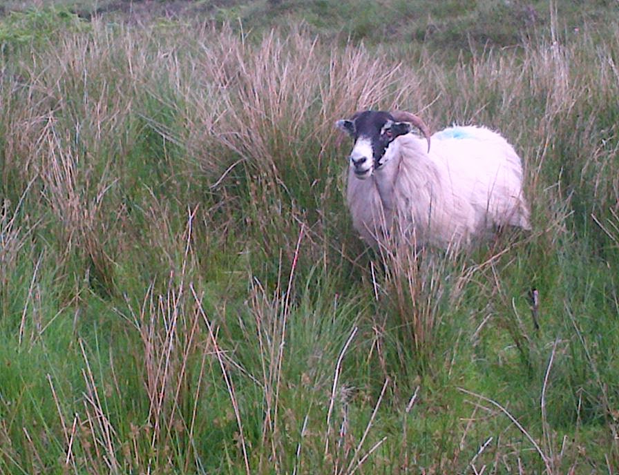 When we decide later in the day to go down to the beach, we again take footwear advice. We hear Geoffrey say we’ll be OK without our sensible shoes, but miss the bit where he says neither he nor Margaret has actually been down there yet; which is how we end up walking through someone’s back garden, complete with sheep and goats, climbing rocks and wading through bog – all in our very non-sensible sandals!